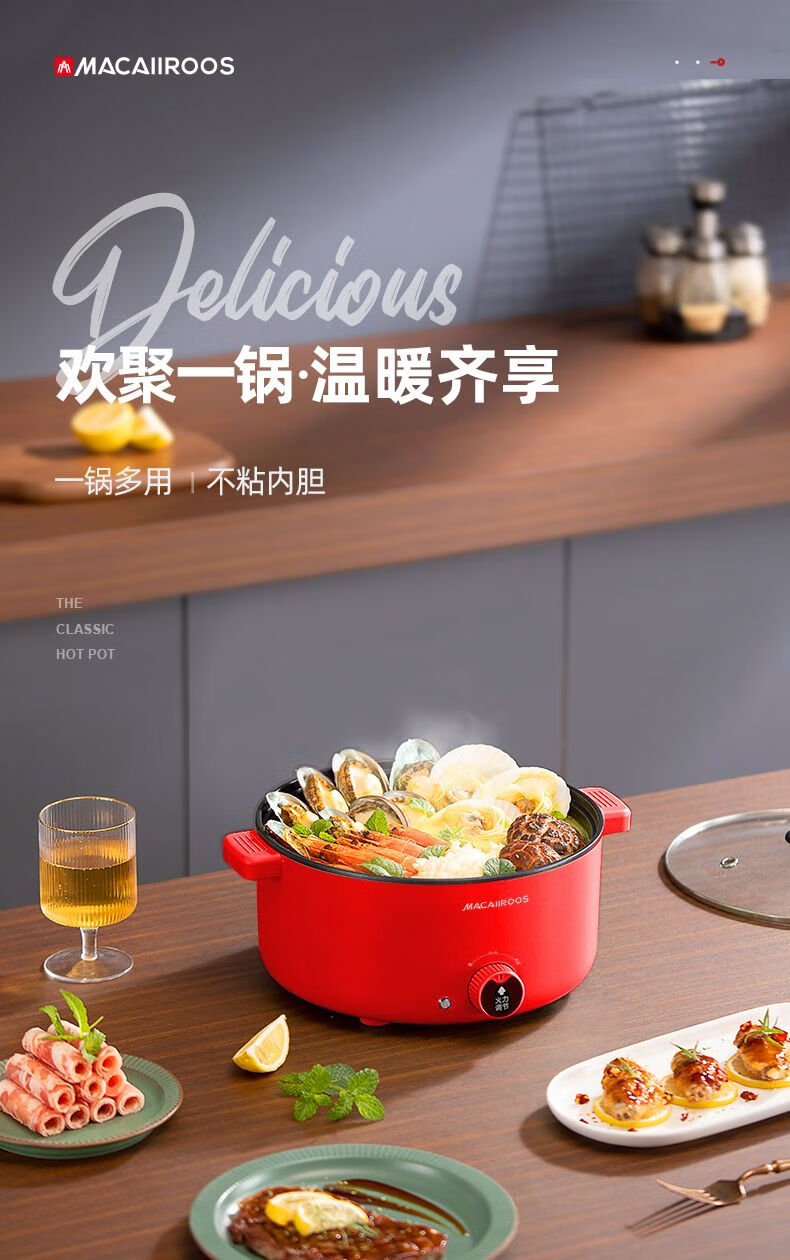 迈卡罗电煮锅火锅家用多功能电锅 MC-HG332(带蒸笼)
