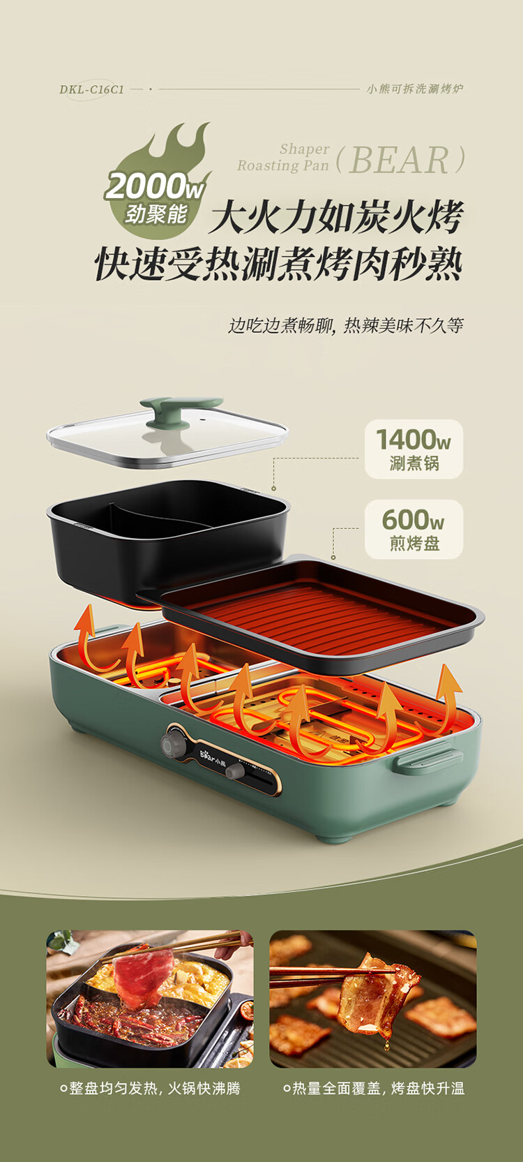 商品名称:小熊(Bear)烤涮一体两用锅 烤肉锅电烤盘 家用电烧烤炉