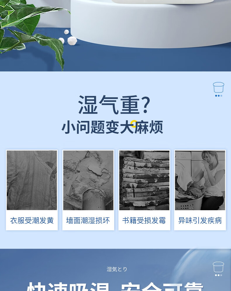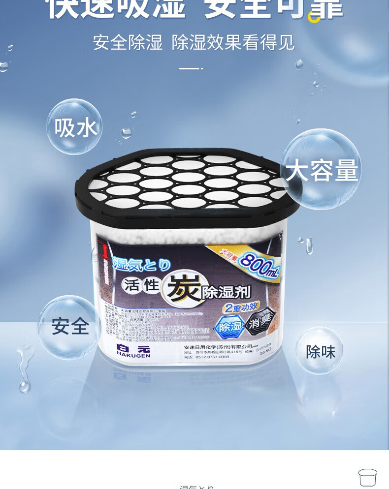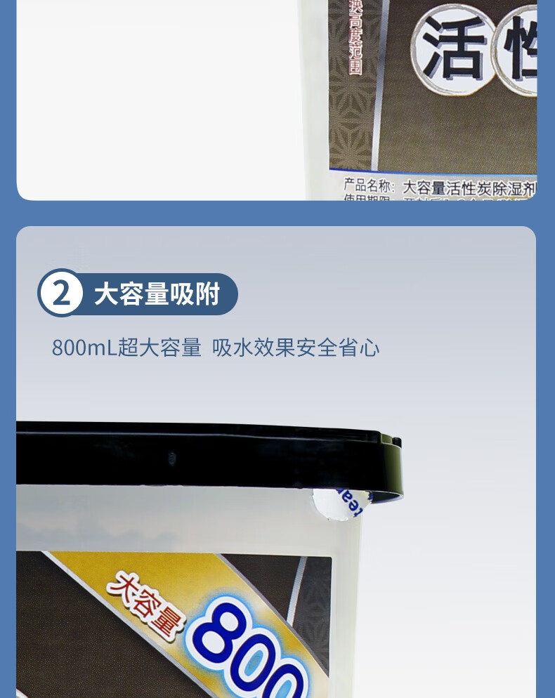 商品名称:白元大容量除湿盒800ml*3盒活性炭消臭味防霉高效吸水除湿剂