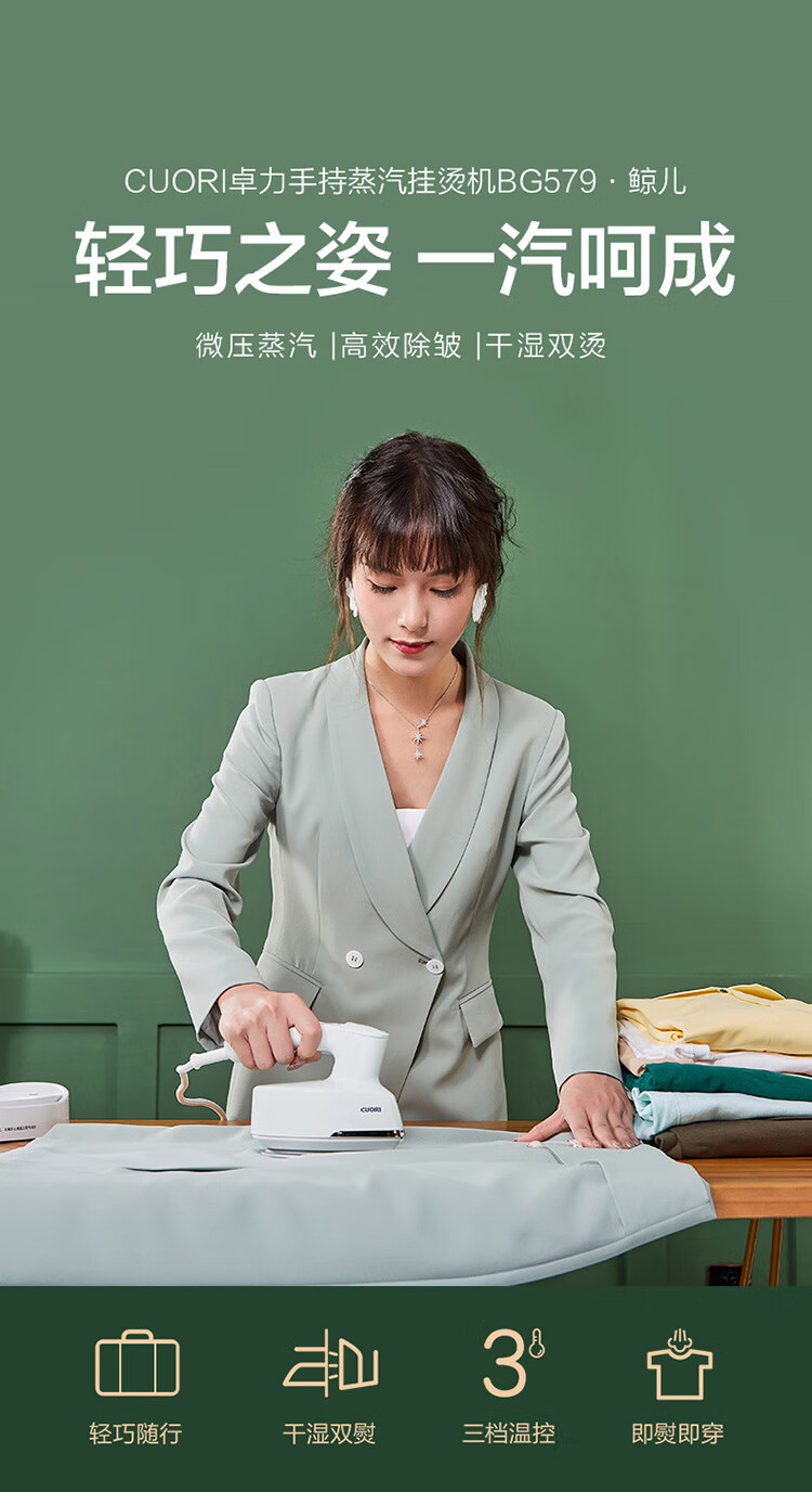 卓力(CuoRi) 手持挂烫机 高温家用蒸汽电熨斗小型便携式烫斗熨衣服旅游出差宿舍熨衣刷