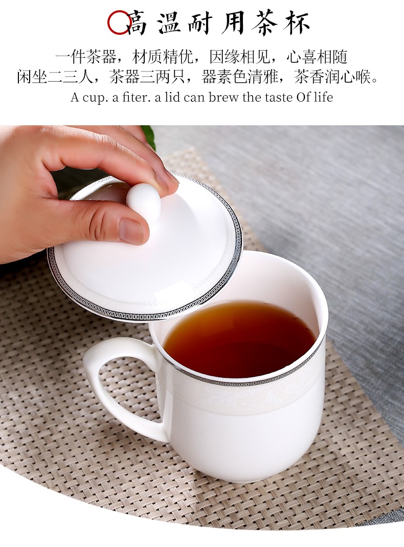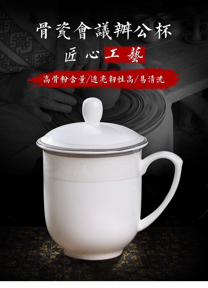 商品名称:茶杯陶瓷带盖杯骨瓷水杯会议杯办公杯酒店商务开会水杯子定制